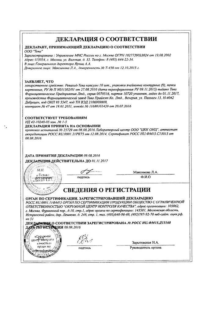 При приеме Ревалида возможны аллергические реакции к компонентам препарата (высыпания, зуд, крапивница, диспепсические явления), повышение секреции желудочного сока, запор, диарея. При длительном применении в высоких дозах возможны гиперкальциемия, гиперкальциурия, гиперурикемия, транзиторное повышение активности АСТ, лактатдегидрогеназы, дисфункция почек. При применении 6 капсул в день возможны расстройства пищеварения, головная боль, раздражительность. В таких случаях уменьшить дозу до 1 капсулы в день.