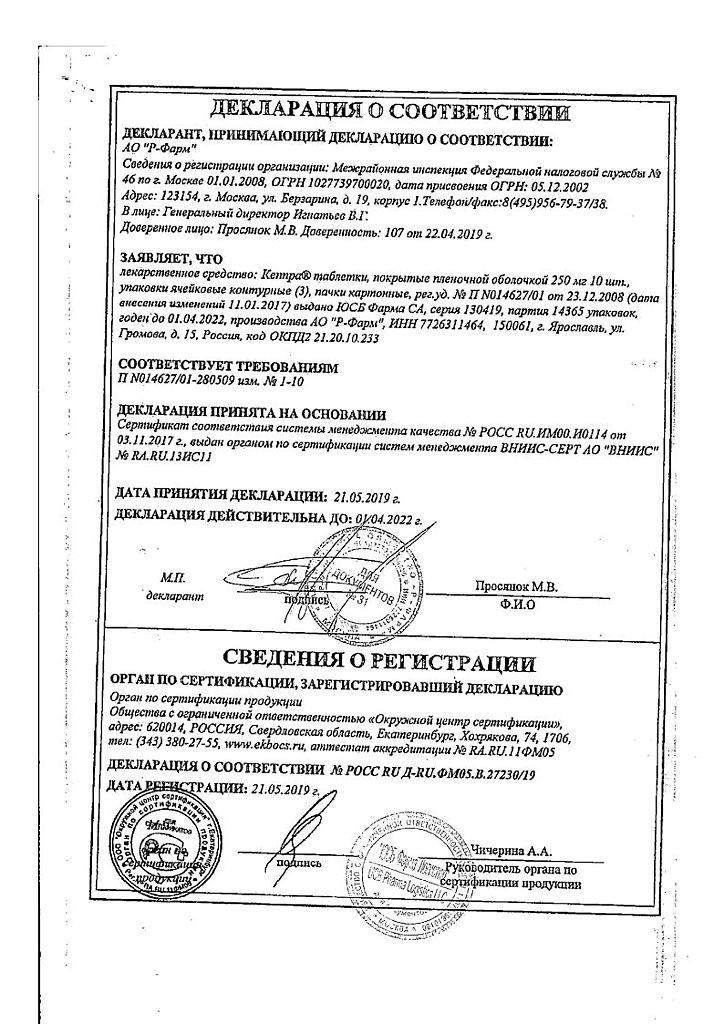 Сертификаты Кепра