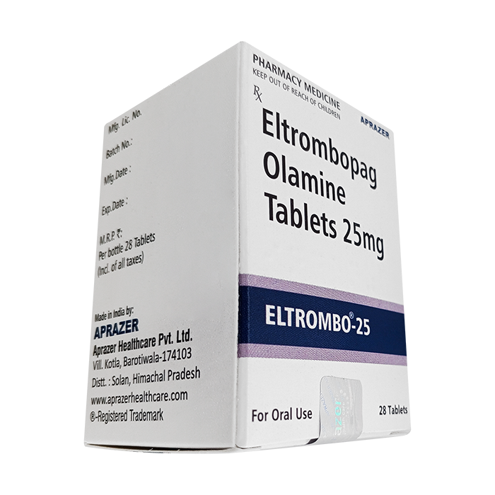 Элтромбопаг относится к группе агонистов рецепторов тромбопоэтина. Eltrombo стимулирует костный мозг (часть кости, которая вырабатывает клетки крови) для производства большего количества тромбоцитов. Элтромбопаг — это лекарство, которое может помочь увеличить количество тромбоцитов (тромбоцитов), тип клеток крови, который помогает остановить или остановить кровотечение.