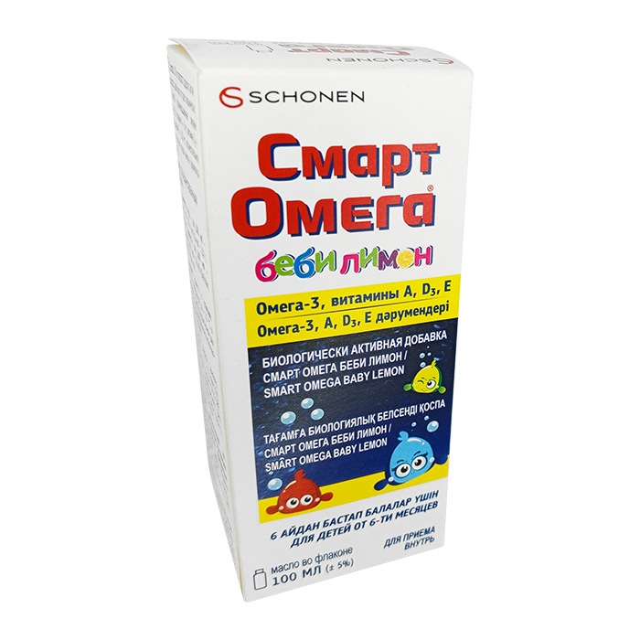 Smart Omega Baby обогащает рацион ребенка жирными кислотами омега-3. Дополнительно продукт содержит витаминный комплекс. Витамины A, D и C помогают в правильном функционировании иммунной системы. Витамин С помогает в правильном функционировании нервной системы. Витамин D способствует правильному росту и развитию костей и зубов. Витамин А помогает поддерживать правильное зрение.